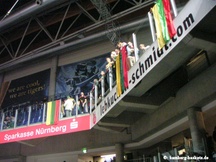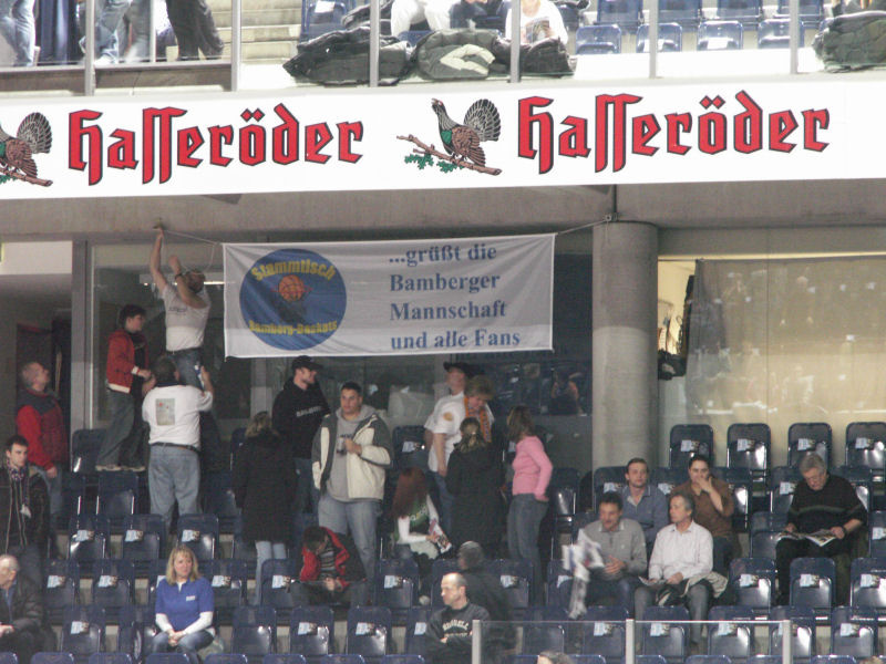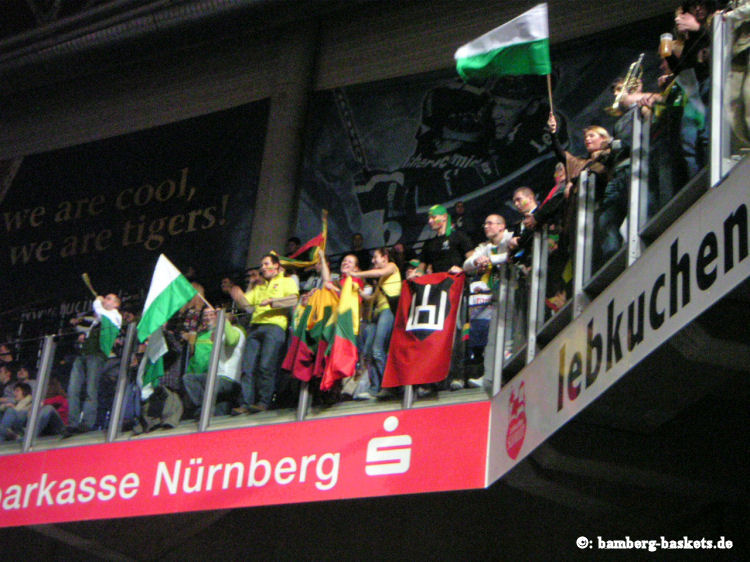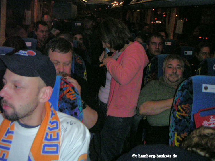 Diese Seite war ursprünglich nur für eine kurze Werbung für unseren Shuttlebus nach Nürnberg gedacht, aber insgesamt 11 Fahrten, 10 mal Euroleague und ein normales BBL-Spiel, davon 9 ausgebucht, mit insgeamt 630 Fahrgästen, liessen die Fotoflut anwachsen, und es lohnt sich ein richtiges Kapitel unserer Stammtischgeschichte daraus aufzubereiten. Insgesamt gesehen, haben die Fahrten Spass gemacht, es waren, gerade in der Euroleague, ganz tolle und hochklassige Spiele, trotzdem, es bleibt zu sagen, im Forum, oder auch bald JAKO-Arena, fühlen wir uns wohler, und sind froh, dass wir die internationalen Spiele jetzt auch in Bamberg sehen können, und wir uns bald wieder auf ganz normale Auswärtsfahrten oder -flüge konzentrieren können. |