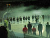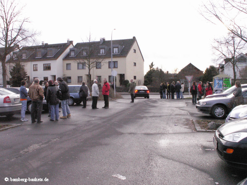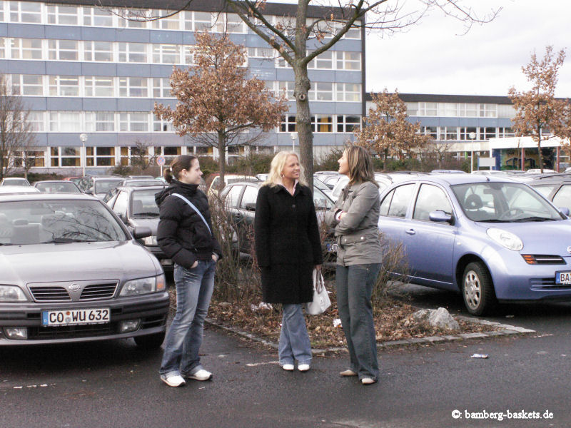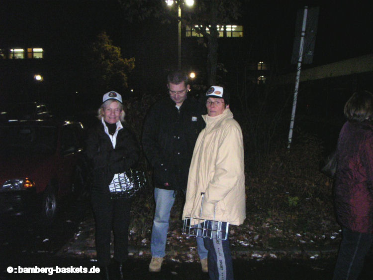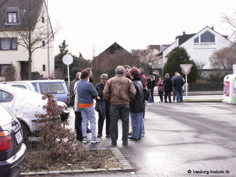 Wir warten vor der Graf-Stauffenberg-Schule bei Nacht und Nebel auf unseren Euroleagueshuttlebus, der uns nach Nürnberg bringen soll |
