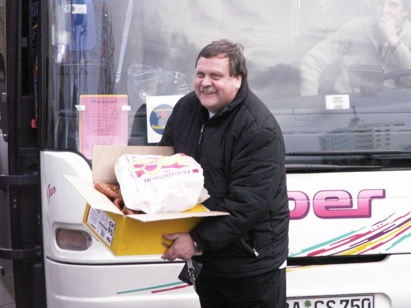 gemütliche Fahrt, natürlich mit Service im Bus: Brezen und Getränke, serviert vom wechselnden Stammtischpersonal,... |