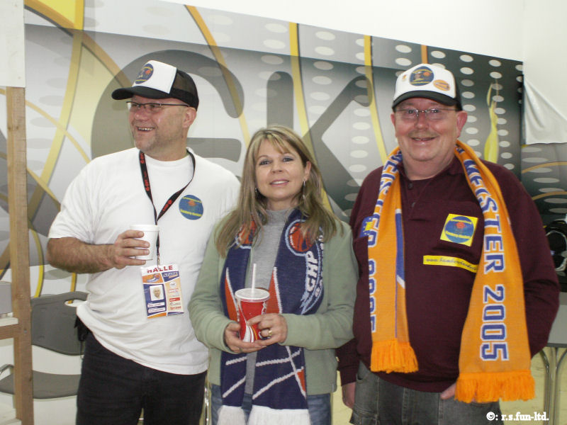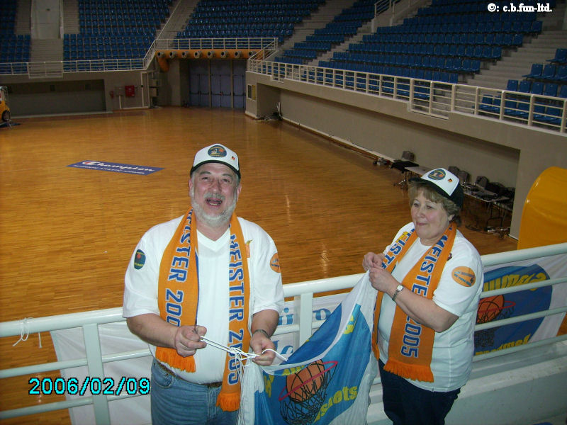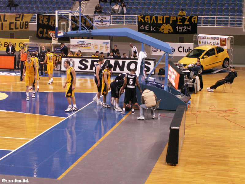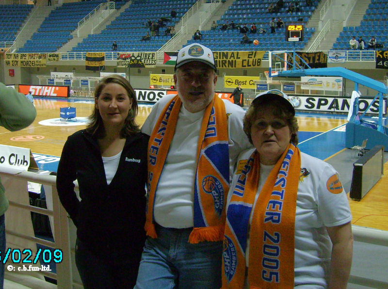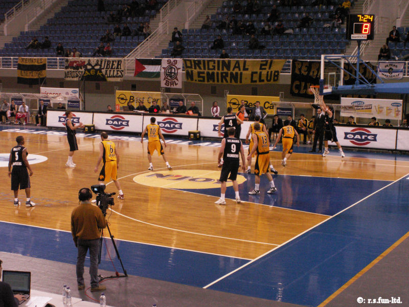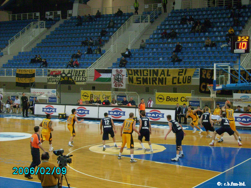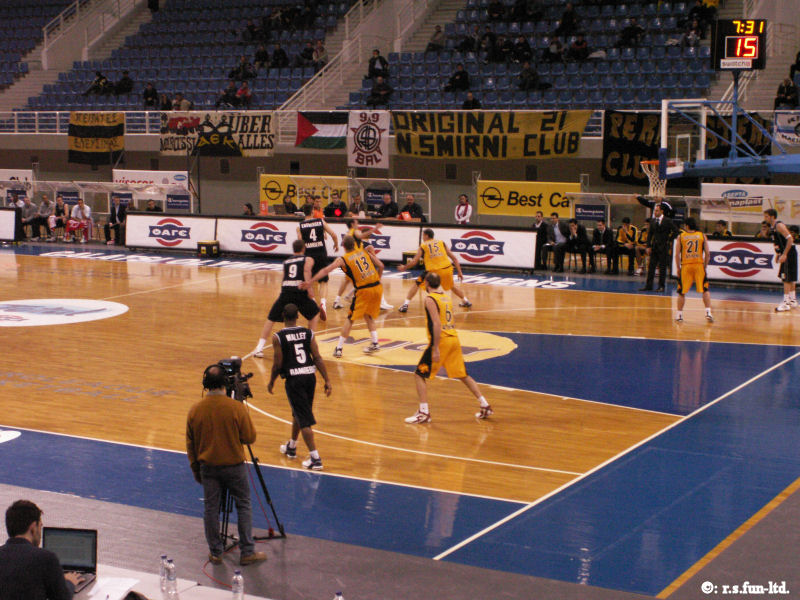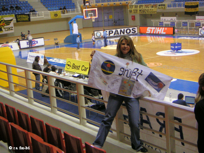 Leider waren nur ca. 150 (!!!) griechische Fans in der Halle, es wurde uns von Griechen erzählt, dass der Sponsor die Mannschaft nicht mehr wie letztes Jahr unterstützt, und deshalb der Erfolg nicht mehr so groß ist, zum anderen viele Fans sauer sind, dass einige Publikumslieblinge nicht gehalten wurden, und deshalb die Fans die Spiele boykottieren |