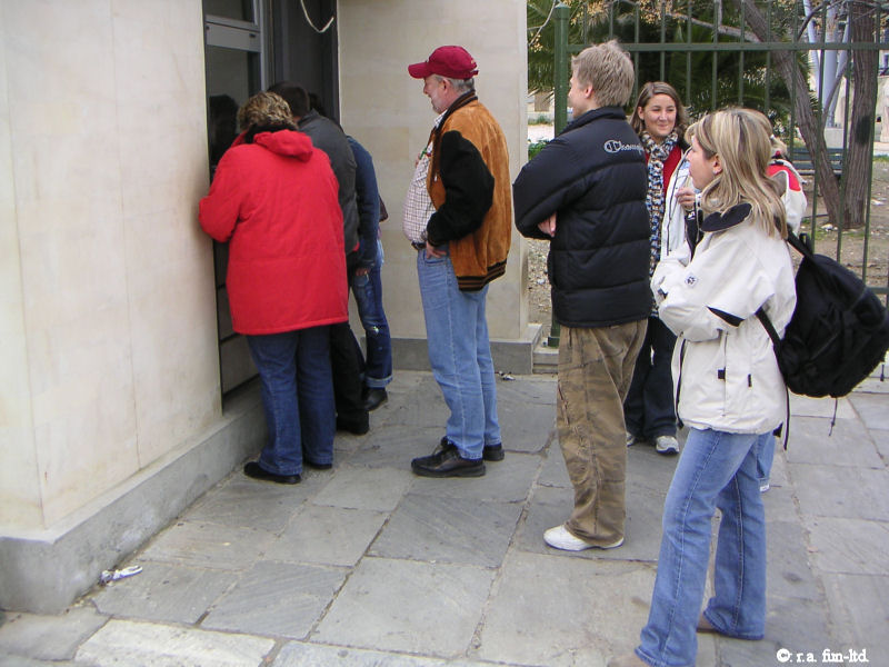 Das Motto des Trips war wohl: getrennt marschieren, vereint zuschlagen, denn zwei Gruppen mit jeweils vier Mann machten sich am 8. und am 9. Februar von München aus auf den Weg nach Athen, um ein bisschen Urlaub zu machen und vor allem, um das Spiel gegen AEK, das letzte Gruppenspiel der Euroleague 2005/06, zu sehen. (Die Bilder öffnen in einem neuen Fenster) |