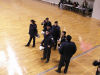 Notwendig war der Schutz für die 13 1/2 Bamberger Fans nicht, im Gegenteil, mit den wenigen griechischen Fans und den fünf deutschen Studenten(-Innen), die sich auch das Spiel ansahen, ergab sich sehr schnell ein herzlicher Kontakt... |