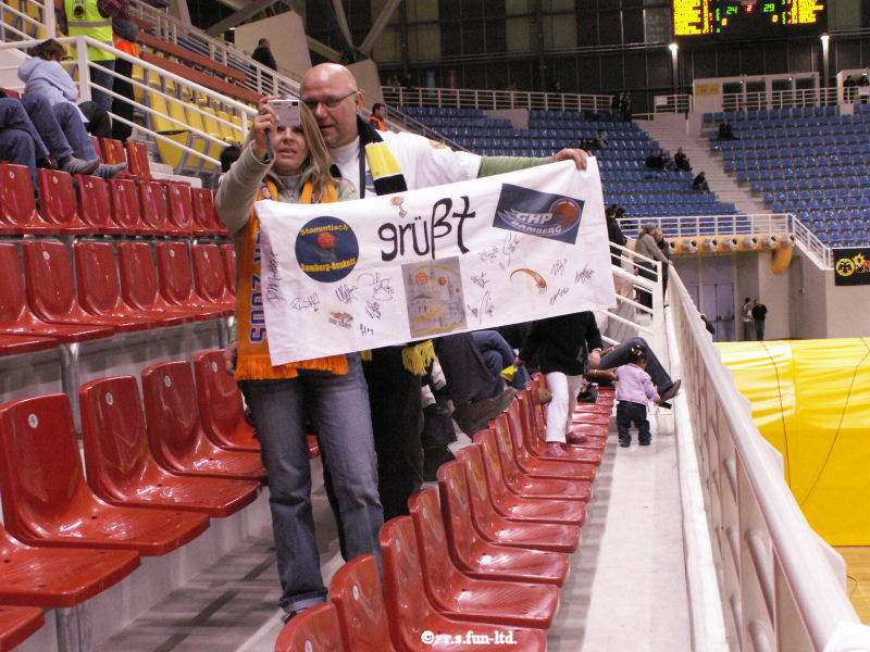 Ausser den Stammtischmitglieder waren noch fünf andere Fans aus Bamberg angereist, teilweise um neben den Besuch des Spieles ihre Tante in Athen zu besuchen. |