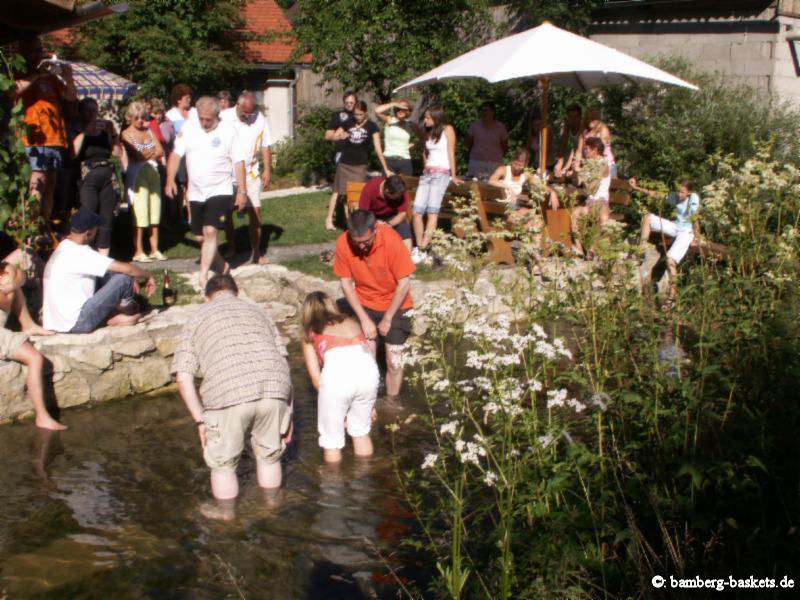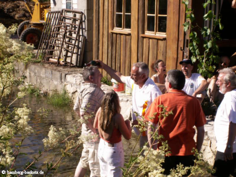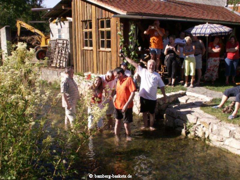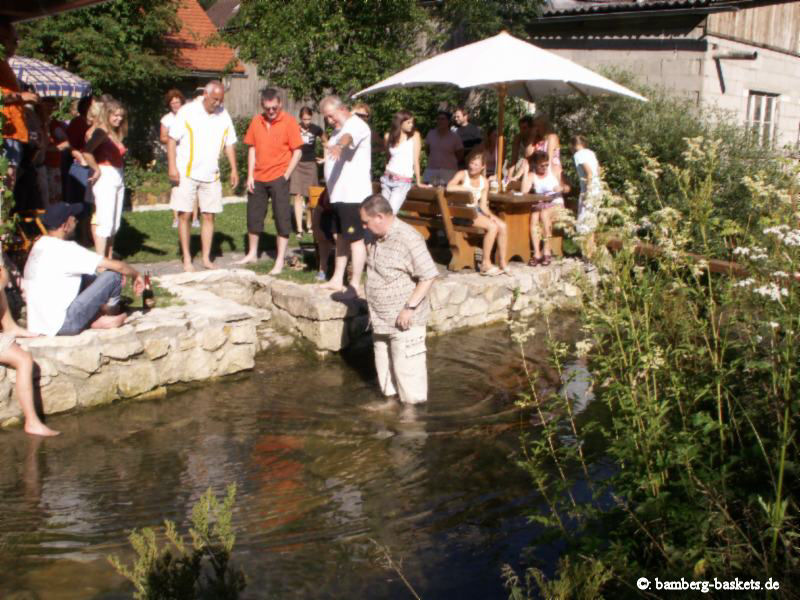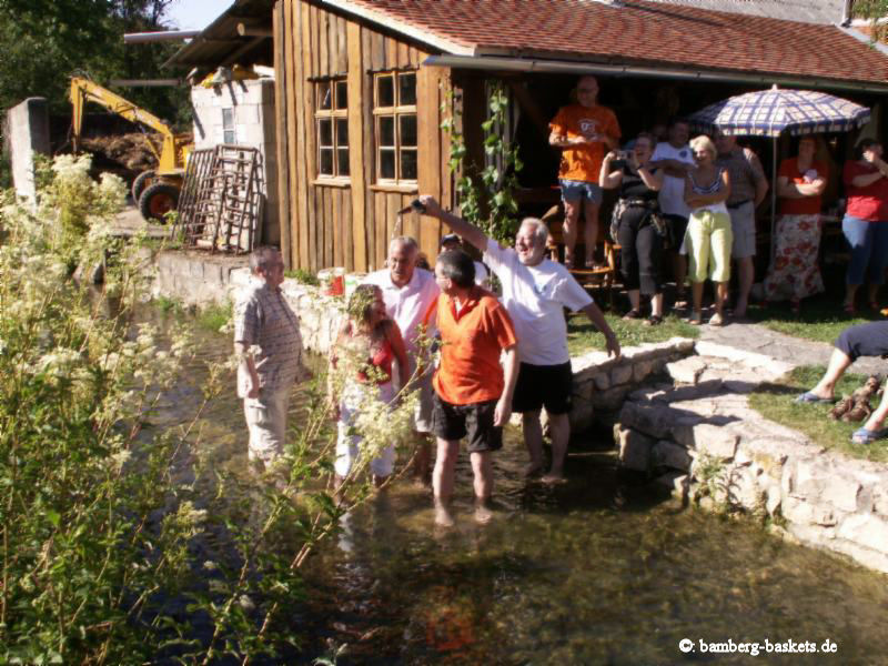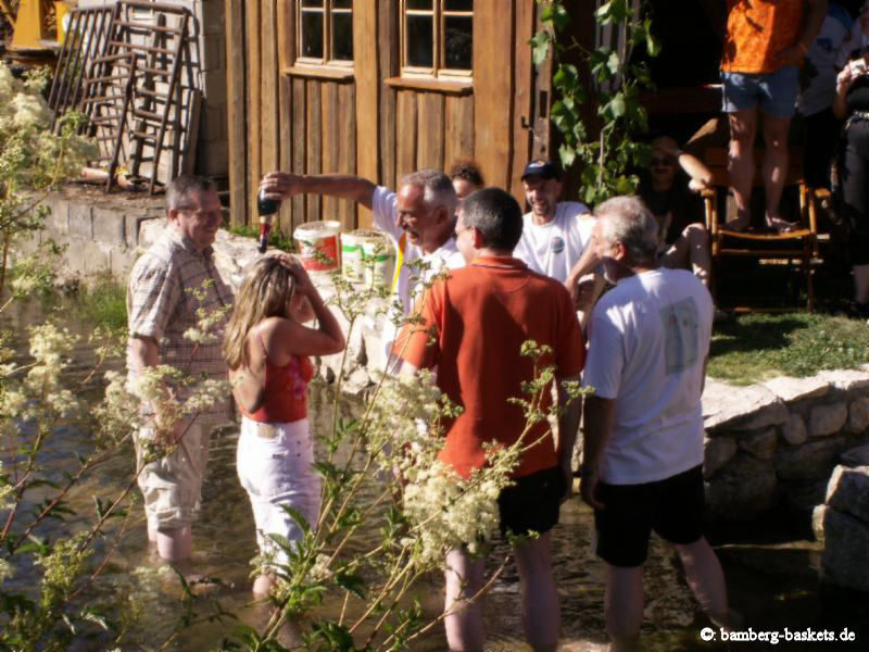 Von fast allen sehnsüchtig erwartet: die Taufe der neuen Mitglieder - die sehen das als einzige mit gemischten Gefühlen, und werden ja auch recht feucht dabei, dieses Jahr erwischte es allerdings auch den Täufer selbst
